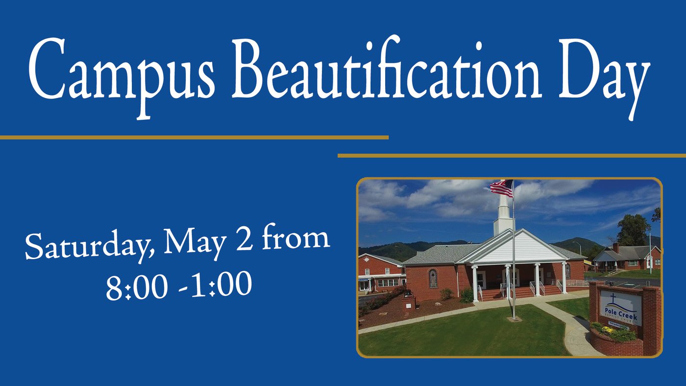 We want to let you know about an upcoming opportunity to serve together. On Saturday, May 2, 2026, from 8:00am to 1:00pm, we’ll be hosting our Campus Beautification Day, led by our Property and Space Ministry Team.